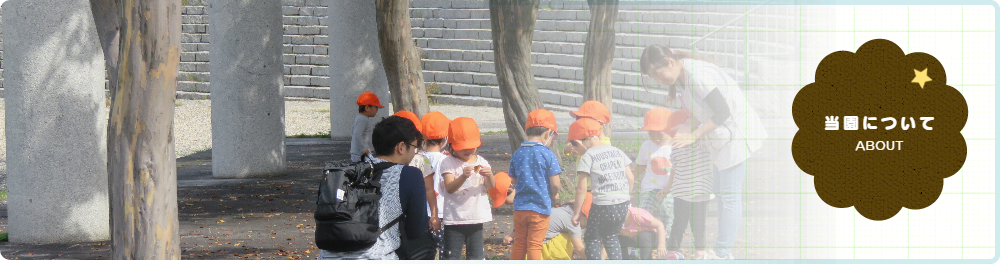 1才児・・・・ばなな組 2才児・・・・みかん組 3才児・・・・りんご組 4才児・・・・ぶどう組 5才児・・・・めろん組 一時保育・・いちご組 |